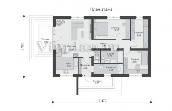 | Размеры дома: | 8.32м×13.47м |